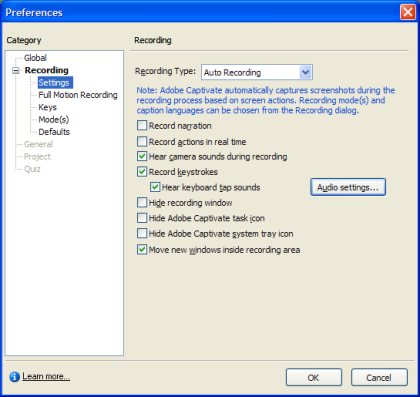 Preferences dialog from the Edit >> Preferences menu item on the main Captivate