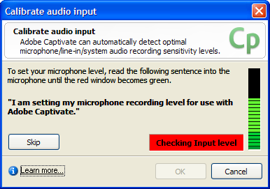 Adobe Captivate uses the system default microphone for audio input. MorphVOX Pro