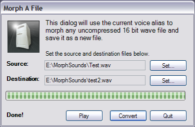 Begin morphing the source file and writing out the destination file. The