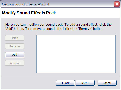 to the list by clicking on the 'Add' button. You can add Wave (*.wav) sound