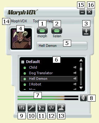 Launches the Custom Backgrounds dialog. Add your own ambient backgrounds to MorphVOX.