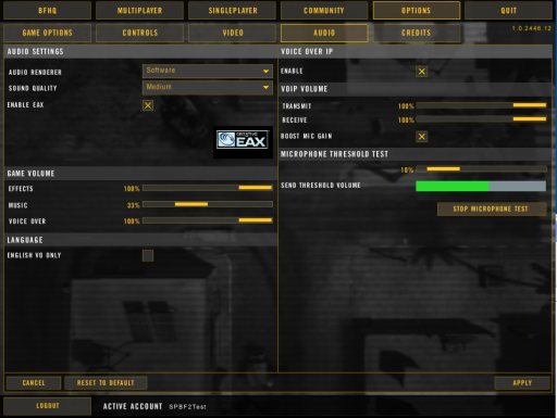 Testing BF2 Audio:  Option Settings
