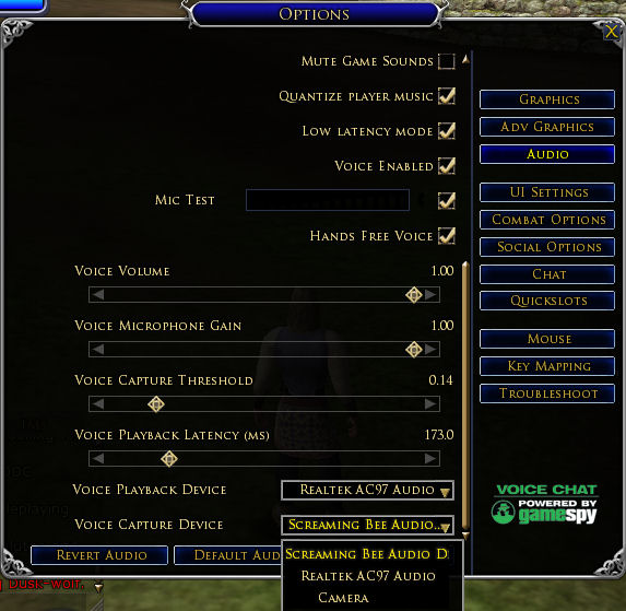 - Set Voice Capture Device to "Screaming Bee Audio Driver"