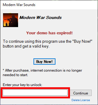 After clicking on a voice in the sound effect list the unlock dialog will appear. Enter your key for the Sound Effects Pack you purchased and it will no longer prompt you to purchase.