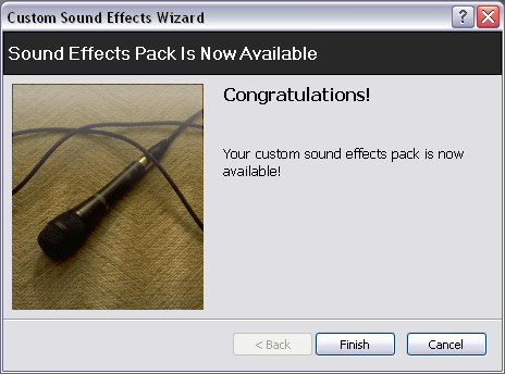 완료: 축하합니다, 커스텀 효과음 팩을 생성하셨습니다.
