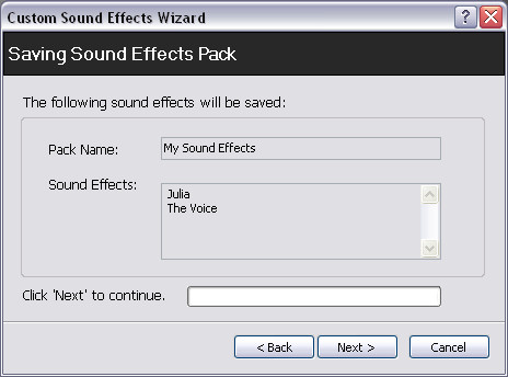 목록에서 효과음 팩을 선택해 '다음'을 눌러 계속하십시오.