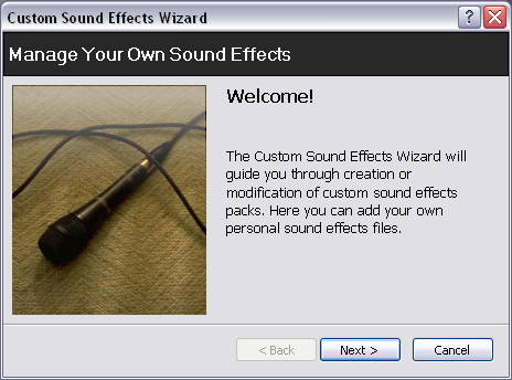 도구 메뉴에서 "커스텀 효과음..." 메뉴 항목을 선택하세요. '다음'을 눌러 계속하세요.