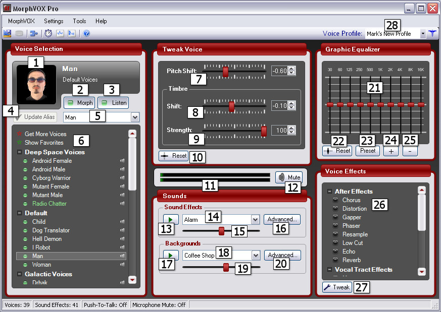 Morph Button: turns morphing on and off. The morphing feature will be on when the green light on the button is bright. |