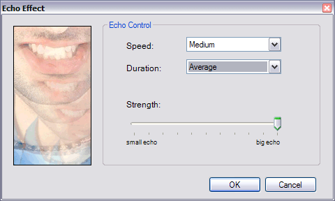 The echo effect gives your voice a delayed bouncing quality as if it were